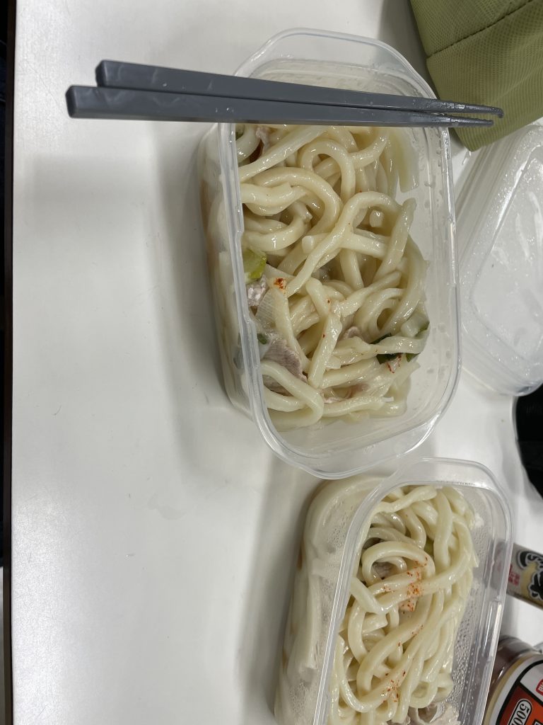 タッパーにうどんとだしを入れて持っていくのはお勧めできない。面が液体を吸ってしまうから。