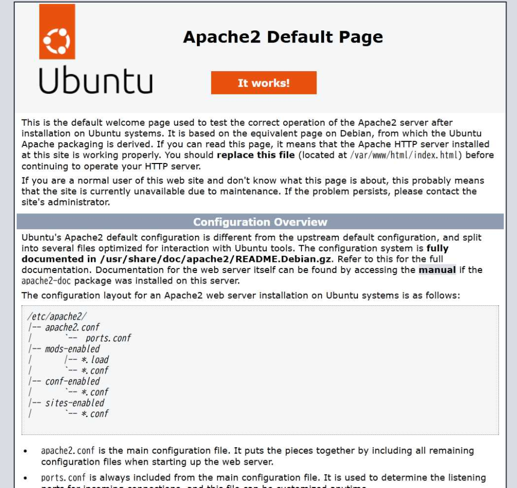 sudo systemctl enable apache2 # サーバー再起動時に自動起動させる-yというのは「自動Yes」するオプションです。この段階でブラウザのアドレスバーにhttp://(ドメイン名)と入れたら、こんなのが見えました。