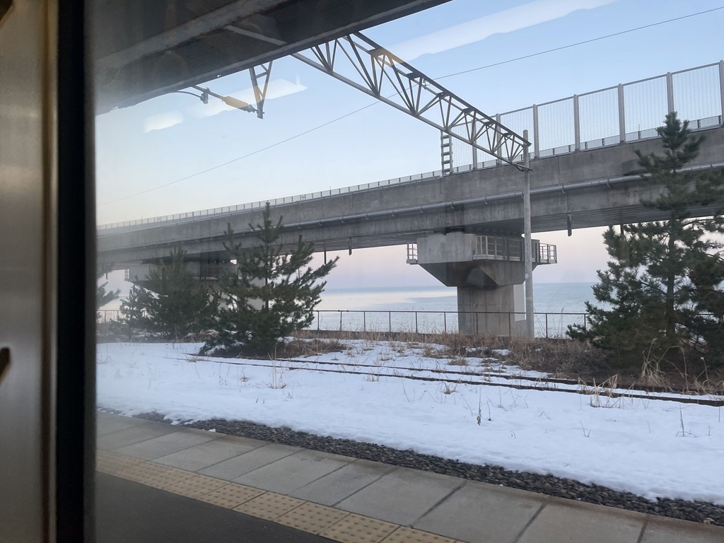 5:57分泊行きに乗車。筒石駅など著名スポットに目をやりつつ南下。日本海ひすいラインというだけあって海の眺めはよかったです。浦本までは私一人でした。