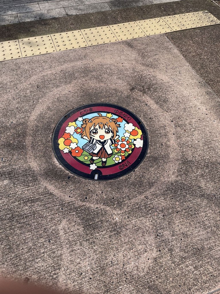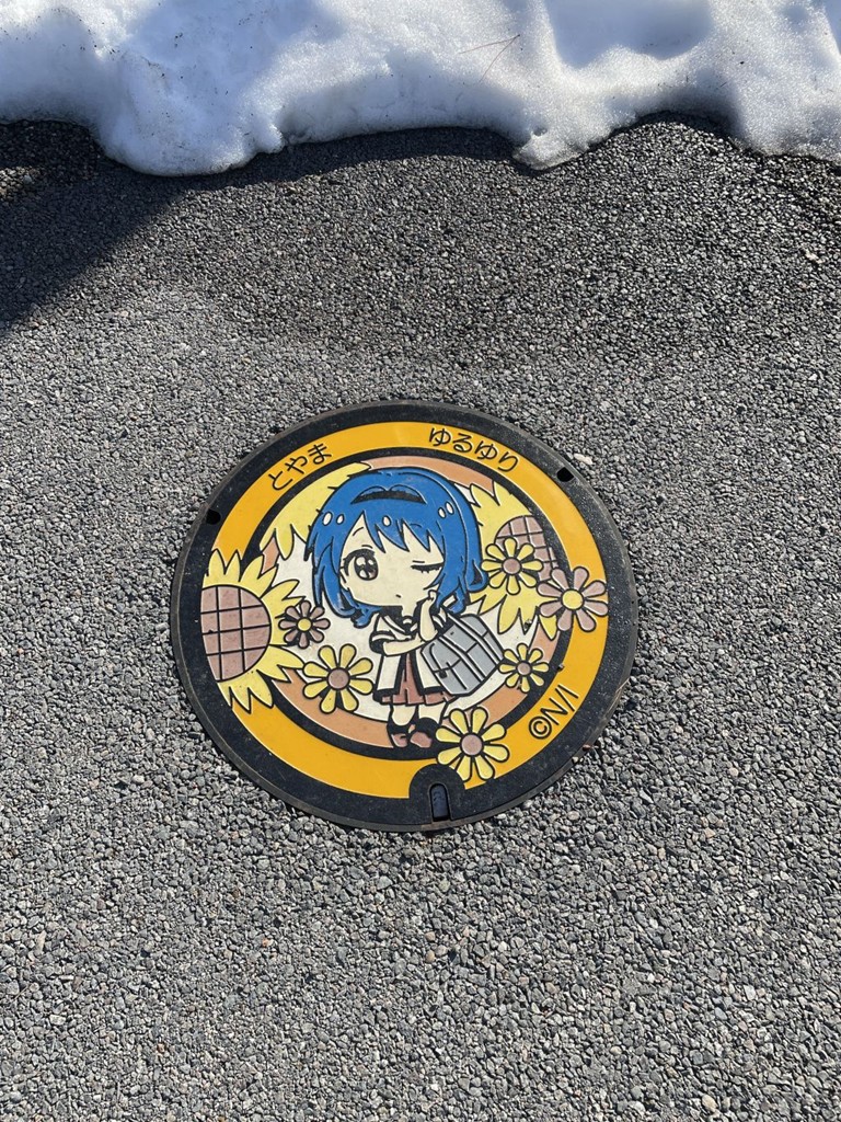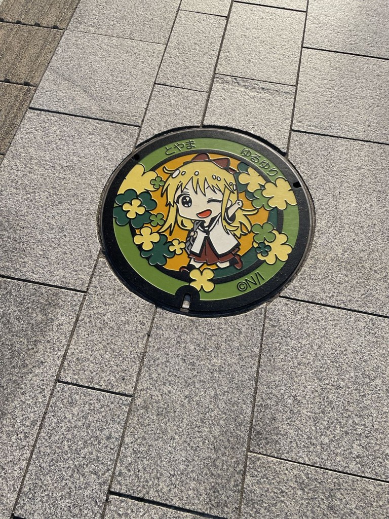 富山市内にゆるゆりのイラストが描かれたマンホールがあるということで。気温が上がってきて結構暑かったです。